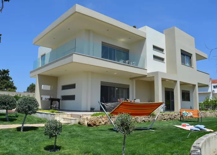 Home21 Asgourou s nekonečným bazénem s 3 ložnicemi je vybavena terasou s výhledem na moře. Pláž Elli je 7 km od tohoto ubytování, zatímco Synagoga a židovské muzeum je 6 km daleko.